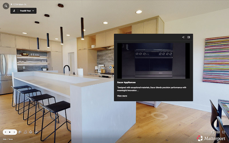 Note: Tags don’t appear when you view a space in VR. The floor selector, floor plan/dollhouse view, zoom, and measurements are also not available in VR.